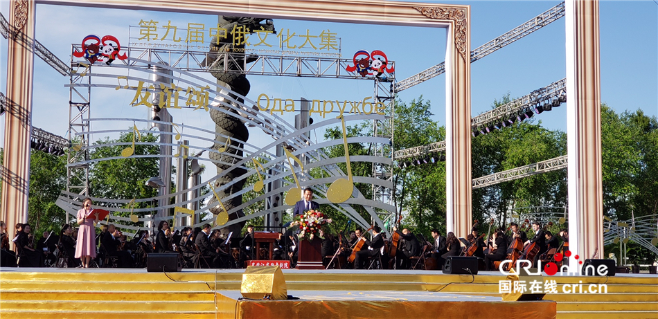 国际在线报道(记者齐莉 列夫金):6月28日下午,以“加强文化交流友好合作,促进两岸两国共同发展”为主题,由中国文化部、黑龙江省政府、俄罗斯联邦文化部、俄罗斯阿穆尔州政府共同主办,黑龙江省文化厅、黑河市政府、俄罗斯阿穆尔州文化档案部、布拉戈维申斯克市共同承办的第九届中俄文化大集中方开幕式在黑河世纪广场隆重举行。