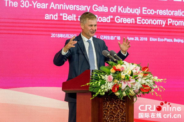 在6月29日举行的 “库布其30年治沙成果总结暨服务‘一带一路’绿色经济推进会”会上,亿利集团董事长王文彪对此进行了介绍。