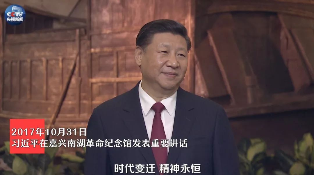 2017年10月31日,党的十九大闭幕仅一周,习近平总书记带领新一届中共中央政治局常委专程前往上海和浙江嘉兴,瞻仰中共一大会址和嘉兴红船,回顾建党历史,再次强调要结合时代特点大力弘扬“红船精神”。