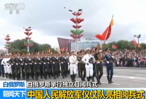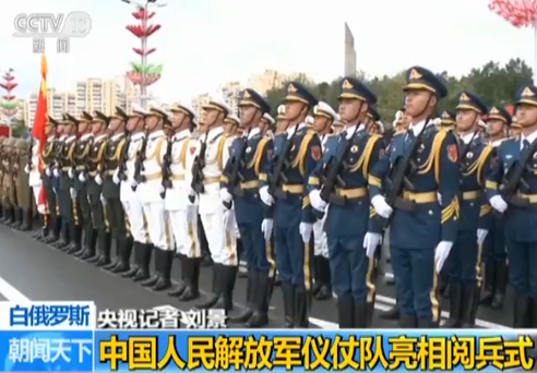 央视记者 刘景:第二次世界大战期间,在共同抗击法西斯主义和军国主义侵略的战争中,白俄罗斯人民同中国人民并肩作战,用鲜血结下了牢固友谊。此次解放军仪仗队参加白俄罗斯独立日阅兵,也是为加强两军交往,巩固两国人民之间的深厚情谊。