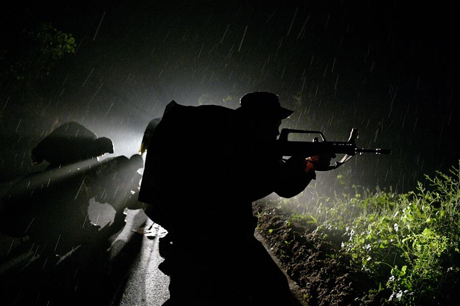 参赛队员进行目标搜索和侦测(7月16日摄)。 7月18日,陆军“侦察奇兵-2018”比武竞赛在陆军步兵学院石家庄校区落下帷幕,来自陆军侦察部队的400余名侦察尖兵,就数十个侦察课目展开激烈角逐,检验陆军新质作战力量实战化训练水平。 新华社发(王东辉 摄)