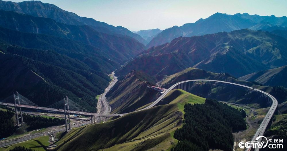 央视网消息:(记者 李夏 邢明 于晓丹)最美的风景在路上,不到新疆不知中国之大。沿着中国最长的高速公路——连霍高速一路向西前往伊犁,途经著名的果子沟大桥。一条弯曲如巨龙般的桥梁横跨雄伟碧绿的果子沟上,格外宏伟壮观。果子沟素有“伊犁第一景”之称,沟内峰峦耸峙、峡谷回转、松桦繁茂。