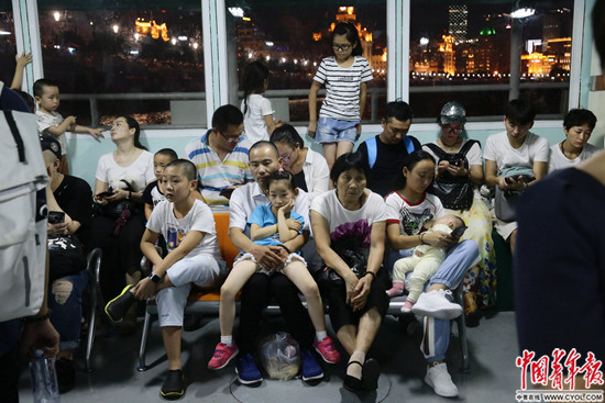 8月28日,上海黄浦江轮渡,人们坐船准备到浦东陆家嘴游览。