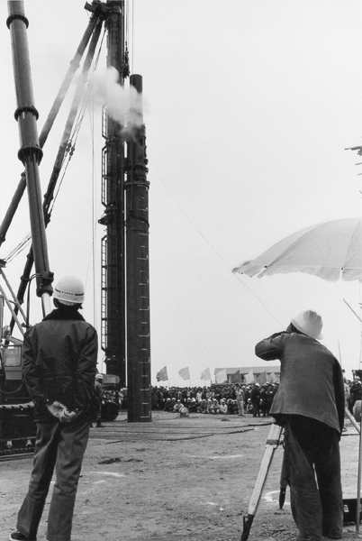 1978年12月23日,宝钢高炉工地打下第一根钢管桩(供图)