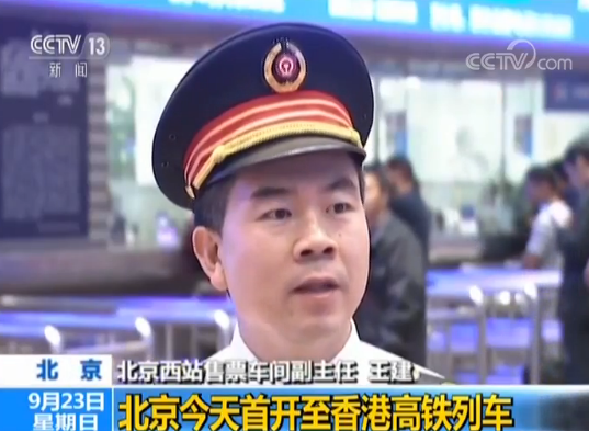 北京西站售票车间副主任 王建:我们这趟车的车票今天基本上售完,其中到香港西九龙的旅客占我们这趟列车座位的10%以上。从这几日的售票情况来看,一直到十一期间,我们这趟车的订票率都保持在50%左右。
