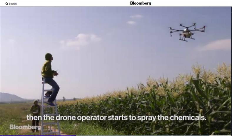 彭博社此前曾采访海南农民张佑荣(音译),并录制了名为“中国农民正走向天空”的视频。张佑荣采用无人机为农作物喷洒农药,而据他说,还有十多个朋友也在这么做。彭博社指出,农业无人机正在风靡中国,这得益于中国政府近年来鼓励农业向自动化转型的政策。