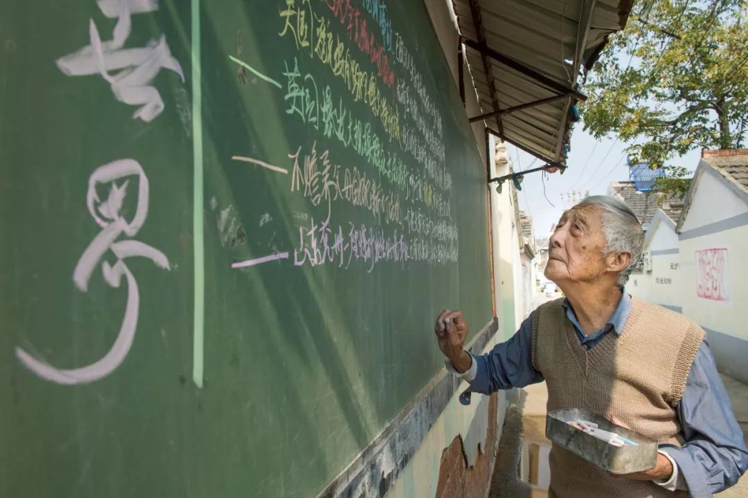 叶连平老师利用村口的黑板办简报,让村民们了解国际国内大事。
