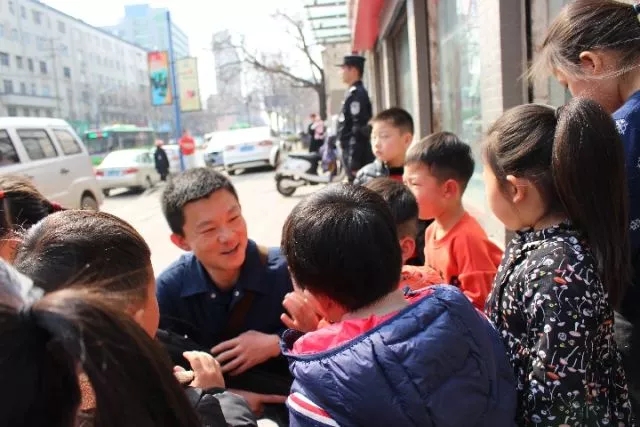 安全教育进校园中,王培给小朋友们讲安全知识。漯河市公安局提供