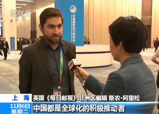 英国《每日邮报》非洲区编辑 斯农·阿里松:习主席在开幕式上谈到,中国将继续推进开放,并提出具体的开放措施。无论现在还是未来,中国都是全球化的积极推动者,全球经济的发展离不开中国。