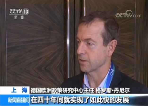 德国欧洲政策研究中心主任 格罗斯·丹尼尔:毫无疑问,中国改革开放四十年取得人类历史上最大的经济发展成就,从未有一个国家像中国这样,在四十年间就实现了如此快的发展,教育水平、科技水平都得到快速提高并惠及到每一个人。