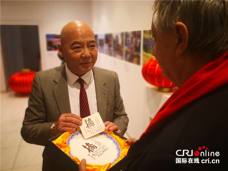 北京友协调研宣传部副部长向波中友协克拉科夫分会负责人什柴潘斯基赠送礼物