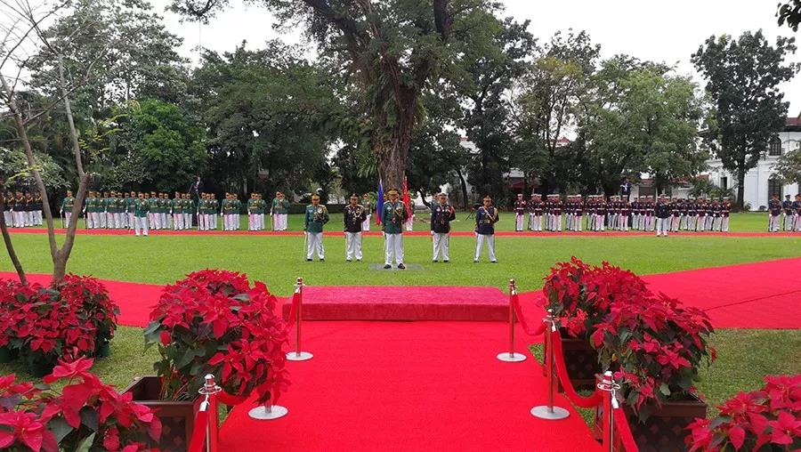 20日下午,习近平出席了杜特尔特在总统府前草坪举行的隆重欢迎仪式。