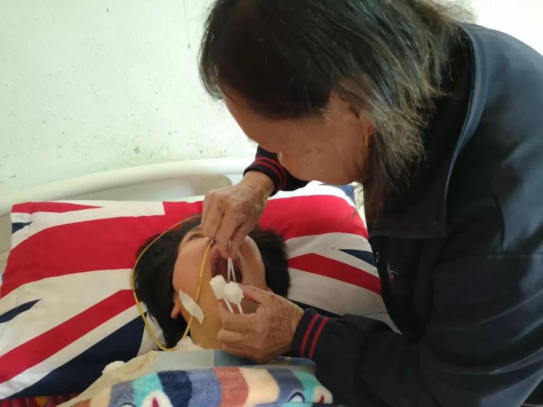 开始大家都以为,郑葱苏的病情经过治疗会慢慢好转,可近20年里,她还是老样子,天天躺在床上无法说话,吃东西也非常困难。