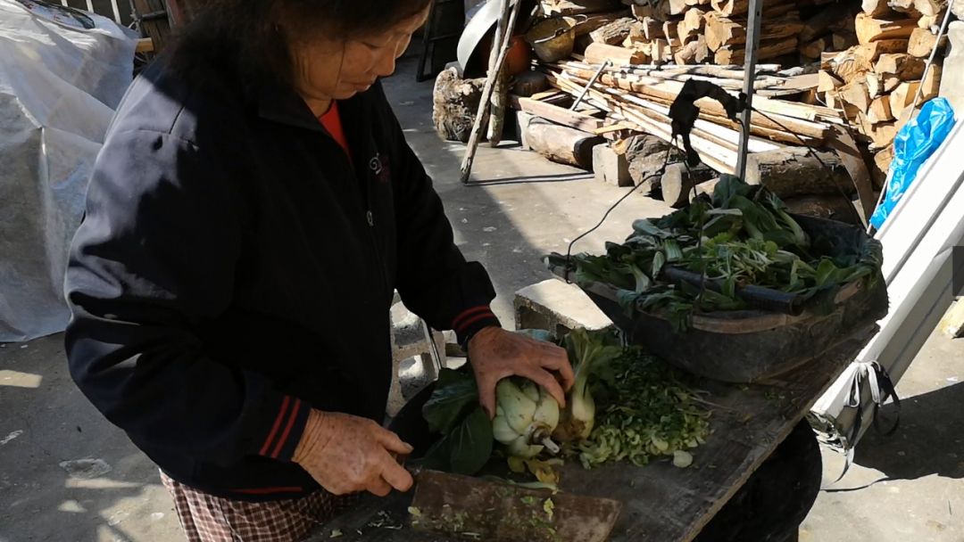 陈朱红婆婆的儿媳瘫痪在床已经快20年了。这些年,老人每天就这样,一边忙农活、做家务,一边照顾瘫痪的儿媳。