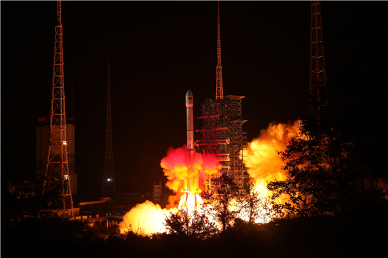 11月19日02时07分,第四十二、四十三颗北斗导航卫星在西昌卫星发射中心用长征三号乙运载火箭发射。 梁珂岩 摄