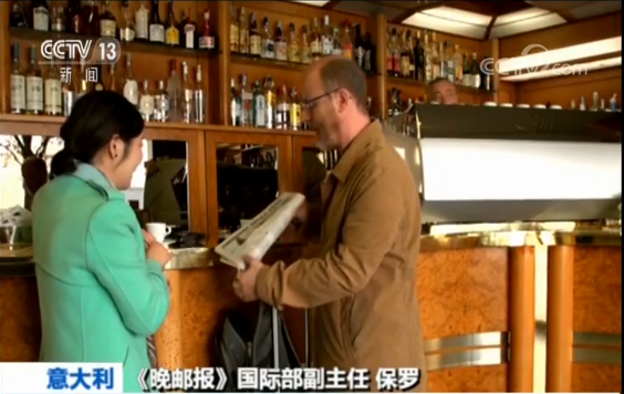 《晚邮报》国际部副主任 保罗:那必须的。有了咖啡,当然少不了报纸。今天(20号)的《晚邮报》刊登了明天(21号)就要抵达意大利的习近平主席的署名文章。今天(20号)早上,会有近400万的读者阅读到这篇关于中国和意大利伟大友谊的文字。