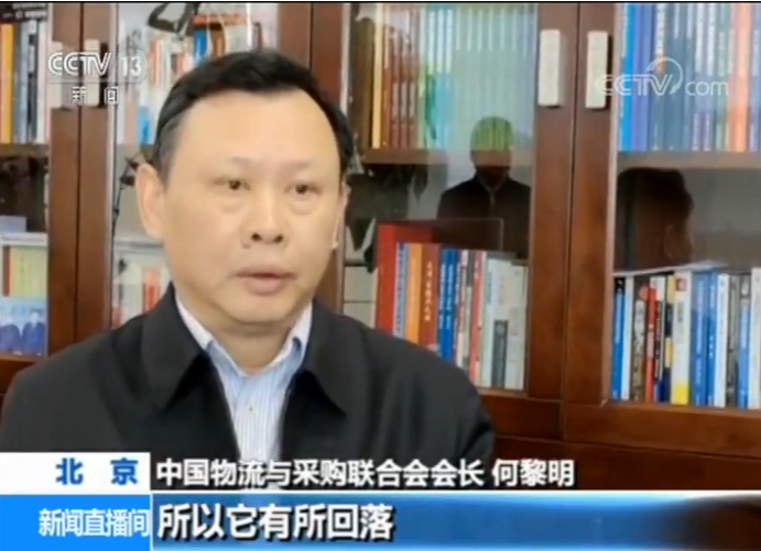 中国物流与采购联合会会长 何黎明:主要原因还是跟宏观经济下行压力有关。受这个影响,所以它有所回落。但是,物流的需求的结构,我们觉得有所优化。你像在最大头的工业物流这个板块里面,它高新技术与制造业物流的需求,同比增长10%以上,与消费和民生相关的物流需求增长了20%以上,所以我们觉得结构是在不断优化。