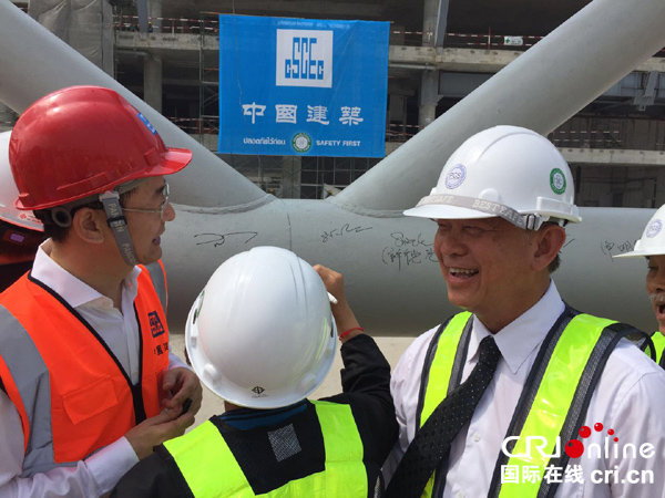 中建八局海外事业部副总经理申明华在当天的封顶仪式上致辞说,中建集团再次创造奇迹,钢结构工程封顶比预期提前22天完工,展现了中建智慧、贡献了中建方案,“中国速度”让很多泰国承包商叹为观止。