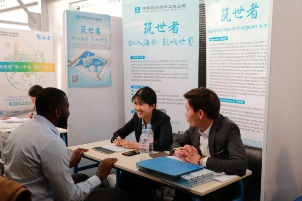 徐桧(中)在法国招聘。资料图
