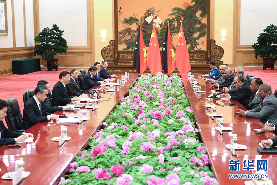 习近平指出,2018年11月,我成功对巴布亚新几内亚进行国事访问并同8个建交太平洋岛国领导人举行会晤。当前,中国同巴新关系处于历史最好时期。中方高度赞赏巴新政府将发展对华关系作为外交优先方向,在涉及中国核心利益问题上给予中方坚定支持。中方支持巴新方自主选择适合本国国情的发展道路,愿同巴新方增进互信,深化合作,厚植友谊,加强在多边框架内协调和合作,推动两国全面战略伙伴关系得到更大发展。巴布亚新几内亚在开展共建“一带一路”合作方面走在太平洋岛国前列,我们要进一步拓展合作,为在岛国地区共建“一带一路”作出示范和引领。