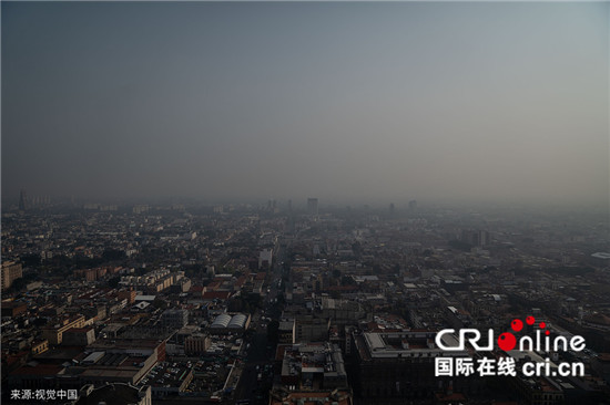 墨西哥城郊区二十多场山火肆虐致空气严重污染 城市一片混沌。图片来源:视觉中国
