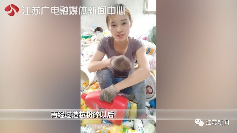 “我身后的这一片,都是生活中最常见的塑料制品垃圾。经过造粒粉碎以后,全部可以制造成新的再生粒子,再做成很多新的生活用品。以后大家再把这些当垃圾丢弃的话,一定放在可回收物的垃圾箱里。”