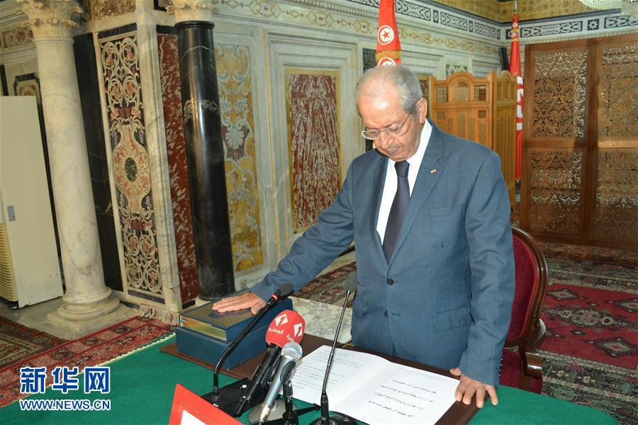 7月25日,在突尼斯首都突尼斯市,突尼斯人民代表会议(议会)主席纳赛尔宣誓就任突尼斯临时总统。 突尼斯总统埃塞卜西25日上午在突尼斯军队医院因病去世。突尼斯宪法规定,如果总统不能履职,将由议长担任临时总统,并在90天内举行总统选举。 新华社发(突尼斯议会供图)