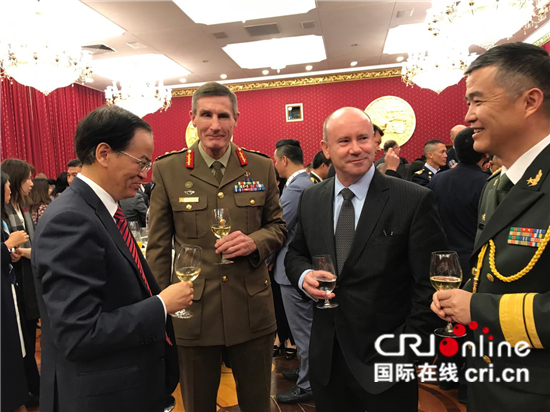 中国驻澳大利亚大使馆国防武官王京国在致辞中,回顾了中国人民解放军建军92年来的历程,以及在维护国家主权、安全和发展利益方面做出的重要贡献,重申《新时代的中国国防》白皮书明确的防御性国防政策和中国“世界和平的建设者、全球发展的贡献者、国际秩序的维护者”的角色定位,介绍了中共十九大以来国防、军队调整改革取得的重大进展,以及中国军队参与联合国维和及护航、国际人道主义救援等行动情况。