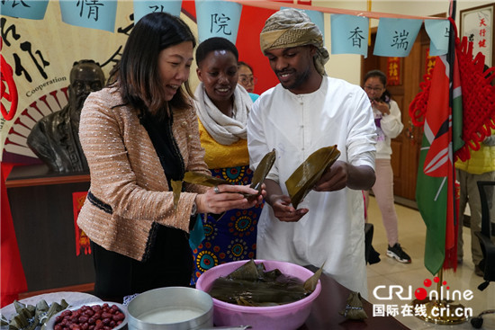 肯尼亚学生端午节学习包粽子(摄影 杨琼)