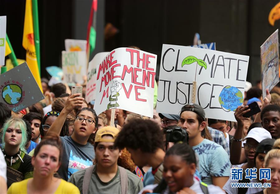 9月20日,民众在美国芝加哥参加气候变化游行。 当日,数千名民众在美国芝加哥举行大规模游行活动,呼吁社会各界应对气候变化。 新华社记者 汪平 摄