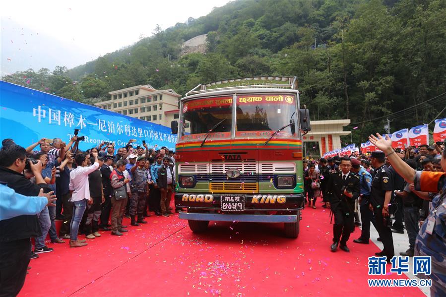 2019年5月29日,一辆尼泊尔货车满载货物驶过连接中国和尼泊尔的友谊桥。 新华社记者周盛平摄