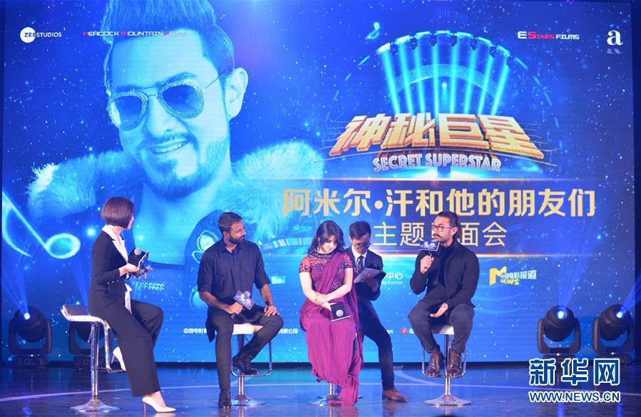 2018年1月23日,印度演员阿米尔·汗(右一)等电影《神秘巨星》主创人员在北京出席见面会。 新华社记者李琰摄