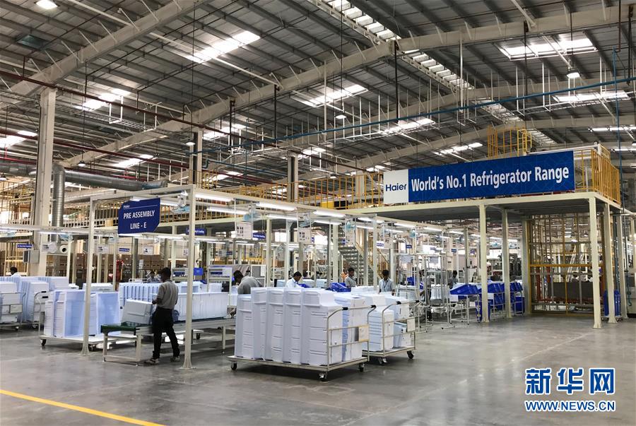 2017年11月16日,在印度浦那市,工人在中国海尔集团工业园厂房内工作。中国海尔集团位于印度马哈拉施特拉邦浦那市的工业园16日举行扩建投产仪式。这是中国家电企业在印度投产的第一个工业园。新华社记者张兴军摄