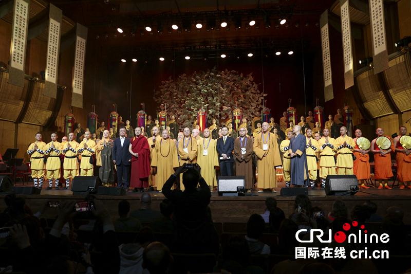 当天晚上,论坛系列活动之一,中国佛教梵呗艺术音乐会精彩亮相纽约林肯艺术中心。音乐会以 “祈福” 为主题,包括梵呗演唱、少林功夫表演、中国佛教三大语系诵经、大相国寺梵乐演奏等。来自中国五大著名寺院嵩山少林寺、开封大相国寺、北京雍和宫、杭州灵隐寺与西双版纳总佛寺的近百名僧侣参加演出。这是中华佛教音乐面向美国东部地区的一次集中展示,也是中国三大语系佛教僧侣首次同台在林肯艺术中心展演佛教梵呗艺术。