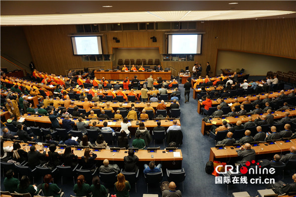 国际在线报道(记者 钱珊铭):当地时间10月12日,第二届中美加佛教论坛在美国纽约联合国总部隆重举行,来自中国、美国、加拿大三国佛教界代表及各界人士近五百人出席论坛。