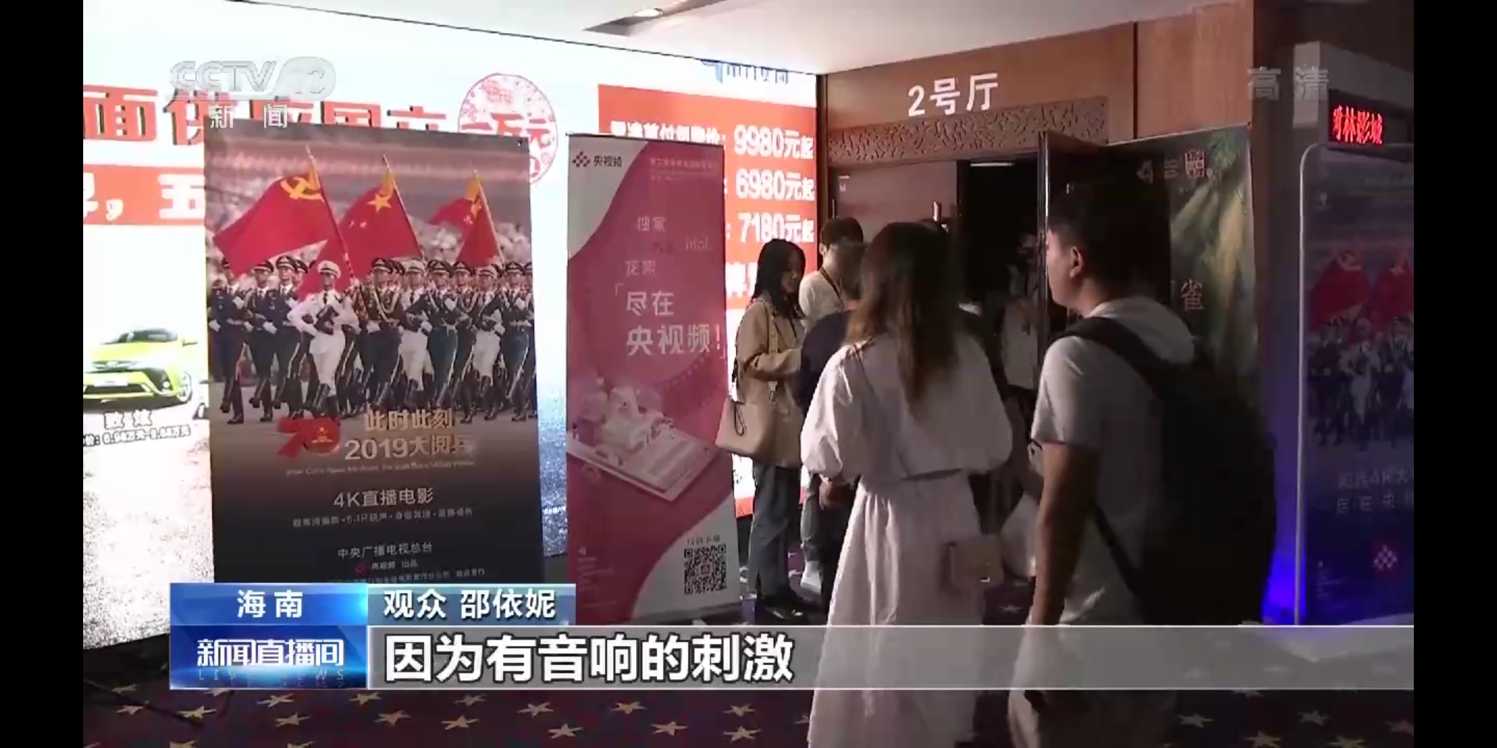 国庆70周年盛典当天,全国十余个城市的70家影院通过卫星传输接入中央广播电视总台4K超高清信号,同步直播4K超高清直播电影《此时此刻——共庆新中国70华诞》。