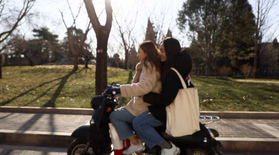 萍婷、凯婷相约蒋铭权、刘嘉丰,电动车缓步徜徉于美丽的清华园,温暖的阳光明媚着年轻人的心情。