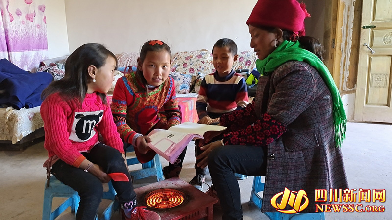 吉好有果(左二)电火炉旁给妈妈读课文
