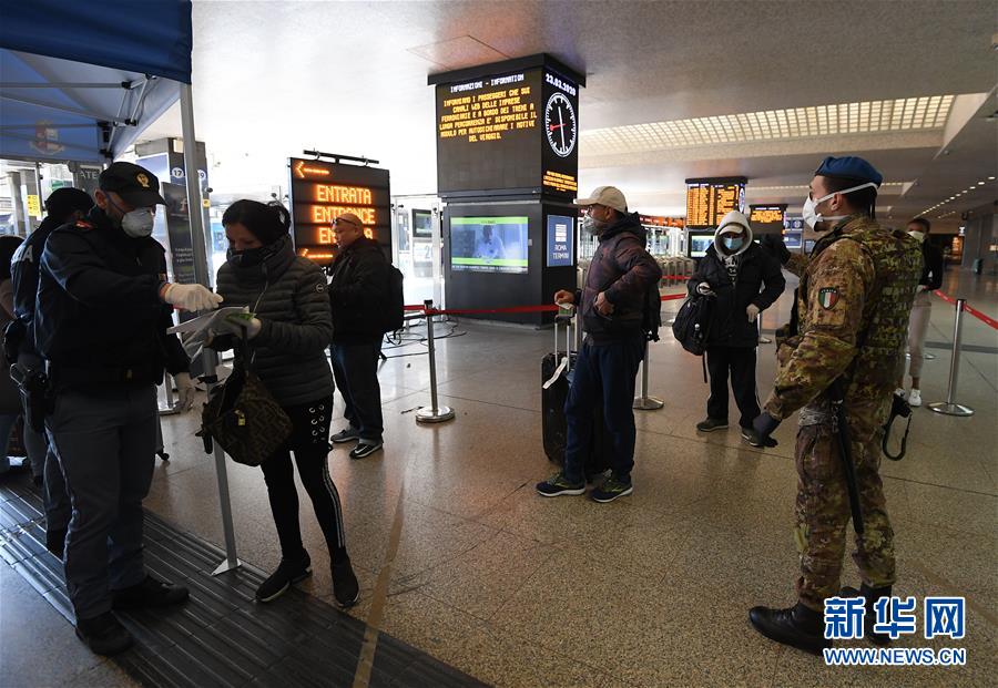 3月23日,军人和警察在意大利罗马泰尔米尼火车站执勤。 新华社发(奥古斯托·卡萨索利摄)