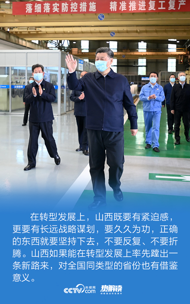 “坚持稳中求进工作总基调,坚持新发展理念,坚持以供给侧结构性改革为主线,扎实做好‘六稳’工作,全面落实‘六保’任务,努力克服新冠肺炎疫情带来的不利影响,在高质量转型发展上迈出更大步伐。”再赴山西,习近平对转型发展提出了更高要求。
