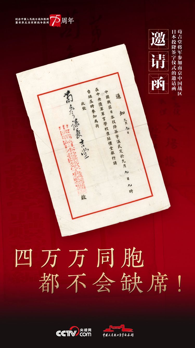1945年9月9日,苟吉堂将军参加南京中国战区日本投降签字仪式的邀请函