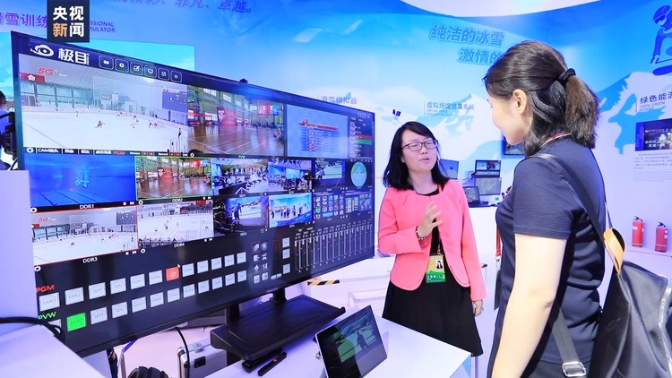 冬奥组委展区在科技创新方面,展出了先进的云转播技术。在滑雪体验区,现场还有专业教练进行指导,在保证安全的同时也让体验者了解了双板滑雪知识。