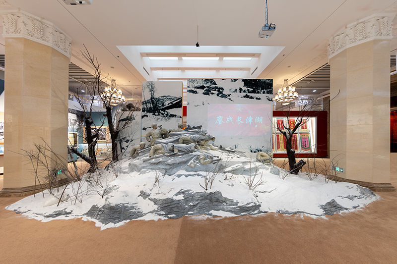 ▲ “铭记伟大胜利 捍卫和平正义——纪念中国人民志愿军抗美援朝出国作战70周年主题展览”中“鏖战长津湖”场景