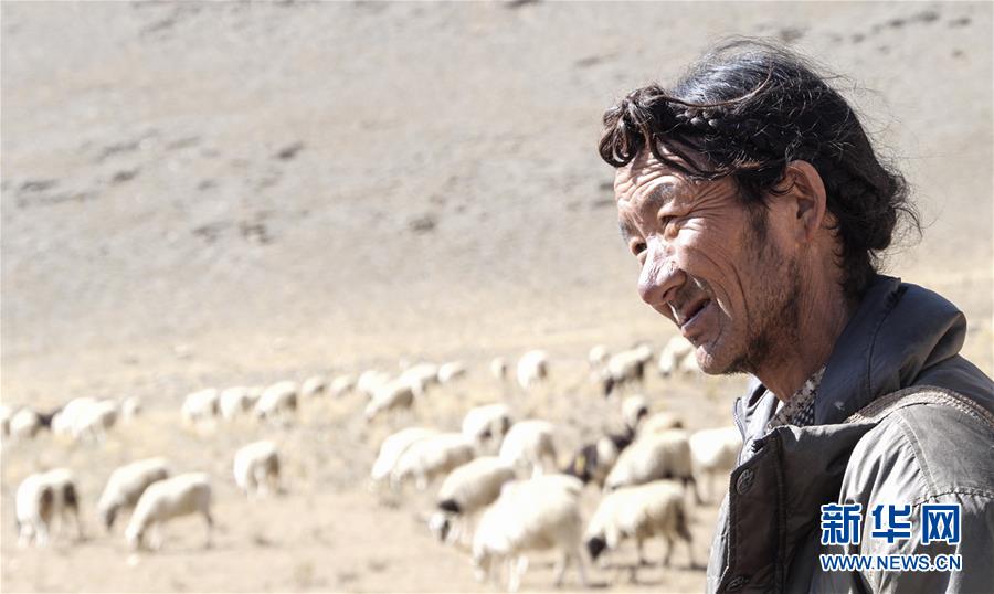 夕阳西下,边巴迎着喜马拉雅北麓入秋的疾风,一边打乌尔朵(藏语,牧人赶牛羊的投石工具),一边大声吆喝着赶羊群回圈。尽管长年风吹日晒在他脸上留下一道道“沟壑”,在海拔4400米的草场,心情欢快的边巴仍健步如飞。