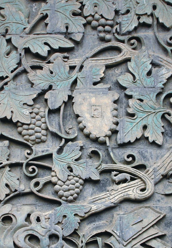A detailed brick carving of grapevines in Qingxu county. [Photo provided to chinadaily.com.cn]
