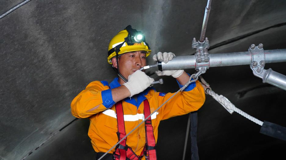 在用来辅助检修的一号轨道车上,5名“90后”青工一边操纵轨道车作业平台,一边用对讲机指挥卡控现场作业。作业平台时而升降,时而旋转。他们上下翻爬,分工明确,扭螺栓、看垫片、紧螺栓,动作娴熟有序。“我们每经过一颗杆柱,都会停下车来认真检查每一个零部件,确保设备质量达标后再往前走,决不能留下一个安全隐患!” 一号轨道车组长冉林茂表示,祸患常积于忽微,一个细微的设备缺陷就可能影响铁路运输安全。对此,昆明局集团公司集中优势资源和能量,利用安全有利时机,通过中老铁路接触网设备全面平推检查,进一步强化设备基础,确保安全畅通。