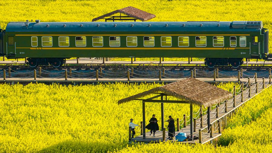 春日到,花期已至。在滇池环湖南路上,晋宁区晋城街道沙堤村委会余家沟下村的油菜花进入了盛花期。春风一吹,一望无际的油菜花海金黄一片、灿烂若阳,让人心生欢喜;童话世界里的小火车“行驶”在金黄的油菜花海之上,已然成为南滇池岸梦幻般的春游打卡地,村里引入了具有当地特色风味的美食餐厅和自助烧烤,既有美景亦有美食,约上三五好友一起在油菜花海景观栈道漫步,找到一个属于自己的旅行目的地。