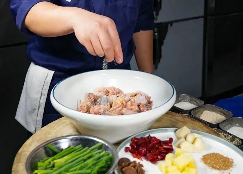 永平黄焖鸡的选料和制作较为讲究,从食材选择开始就有严格要求,鸡必须现宰,取当地山区放养土鸡,宰杀后洗净,切成2厘米左右的块状;同时准备干辣椒、花椒、葱、姜、蒜、八角、草果、精盐、植物油等佐料备用。