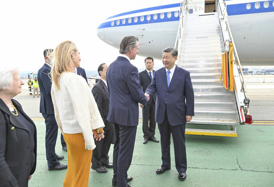 当地时间11月14日下午,国家主席习近平乘专机抵达美国旧金山,应邀同美国总统拜登举行中美元首会晤,同时应邀出席亚太经合组织第三十次领导人非正式会议。习近平乘坐专机抵达旧金山国际机场时,受到美国加利福尼亚州州长纽森、财政部长耶伦等美方代表热情迎接。新华社记者 谢环驰 摄