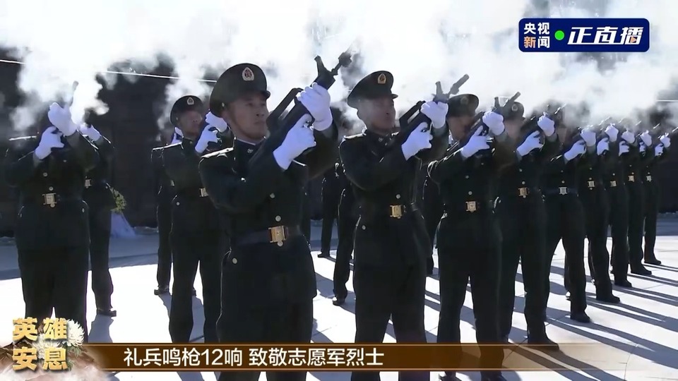 △礼兵鸣枪12响 致敬志愿军烈士